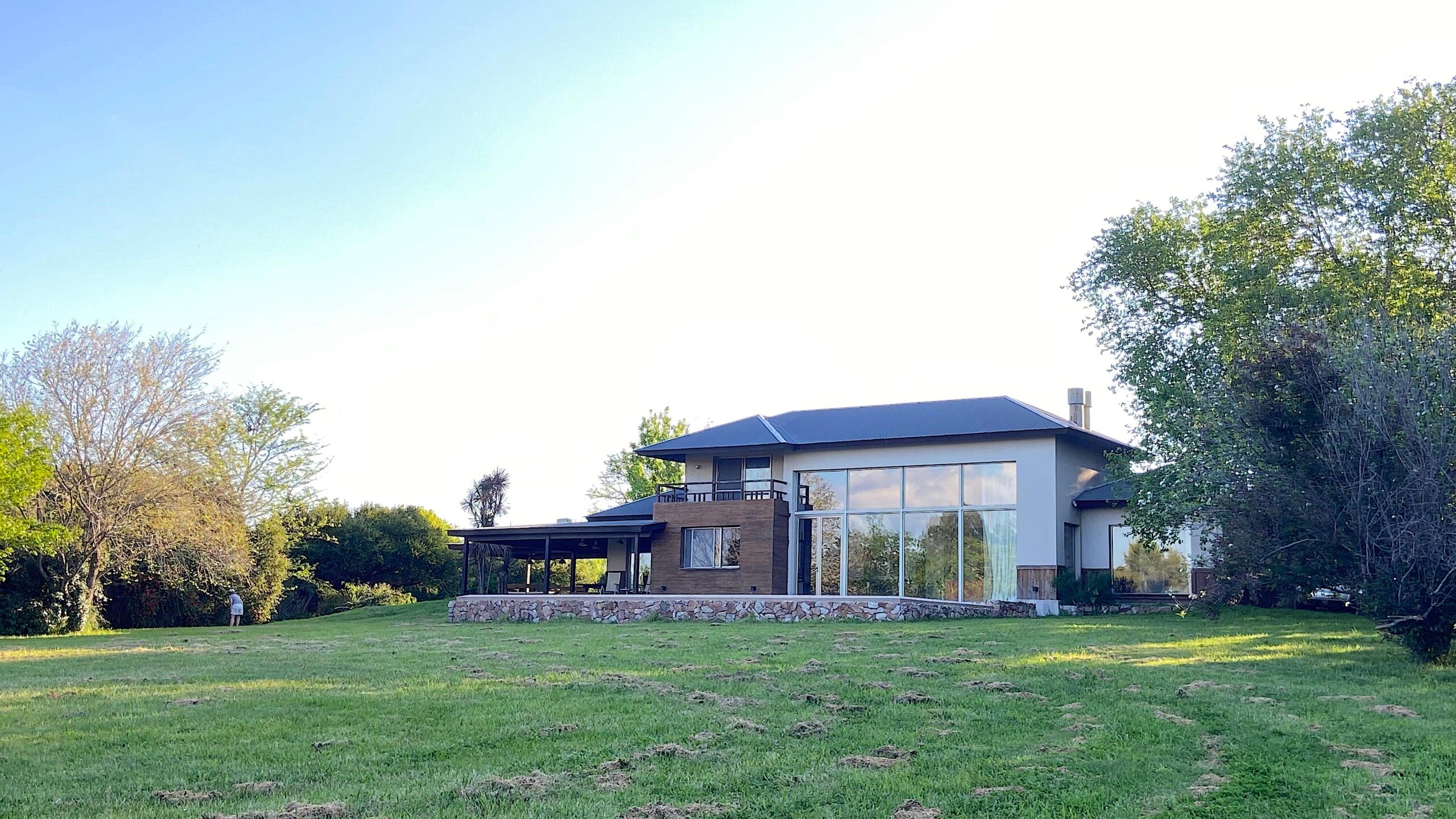 Casa de alta calidad de 3 dormitorios + uno externo en excelente lote arbolado con vista al campo.