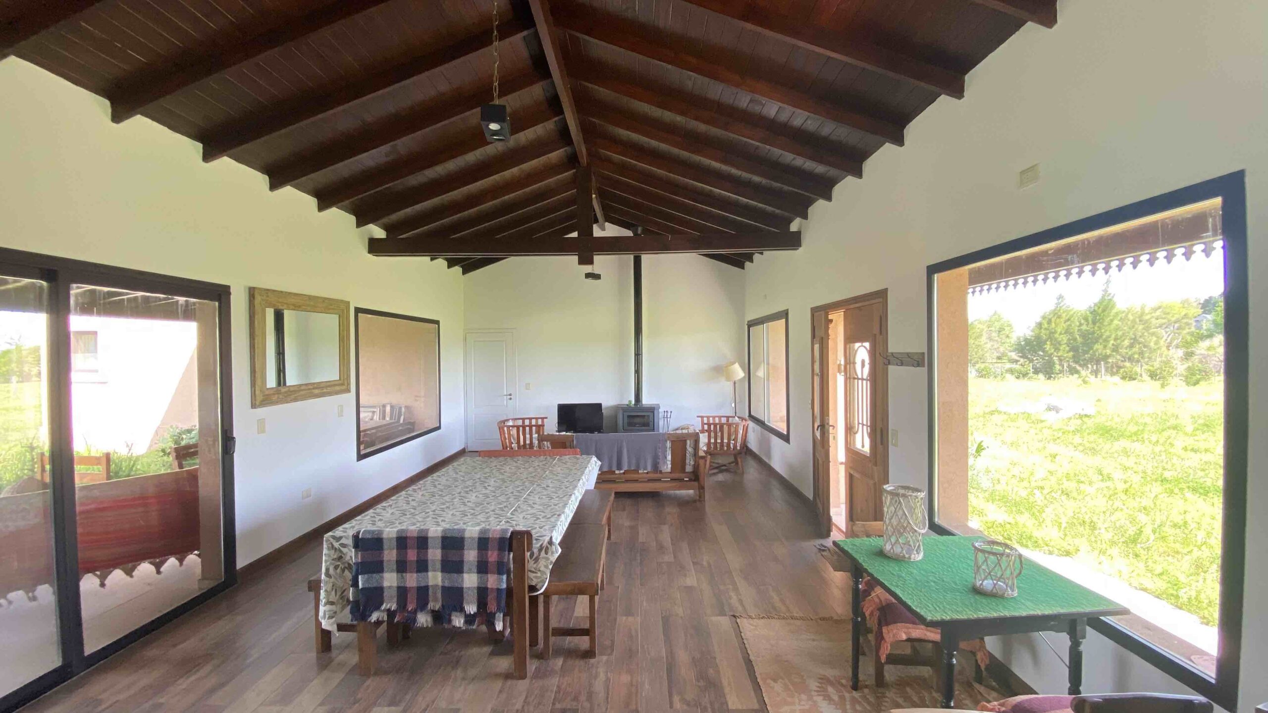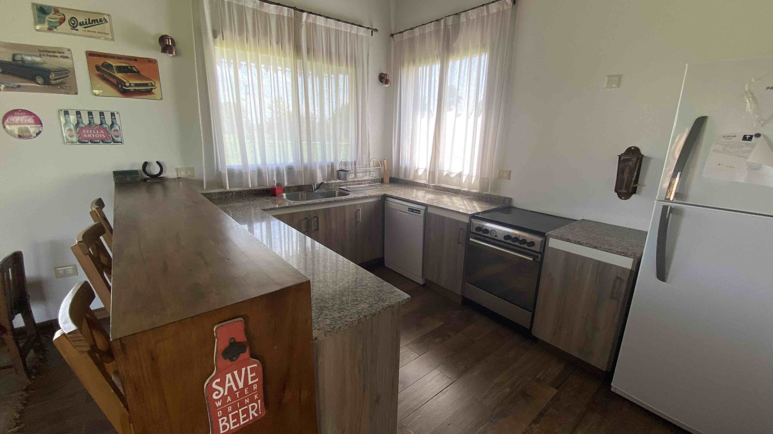 Muy lindo lote con intimidad y gran espacio común de campo atrás. Buena galería con parrilla, muy completa. Pileta. Living comedor con cocina integrada. Toilette, lavadero y depósito independiente. Un dormitorio principal en suite. 2 dormitorios que comparten un baño.