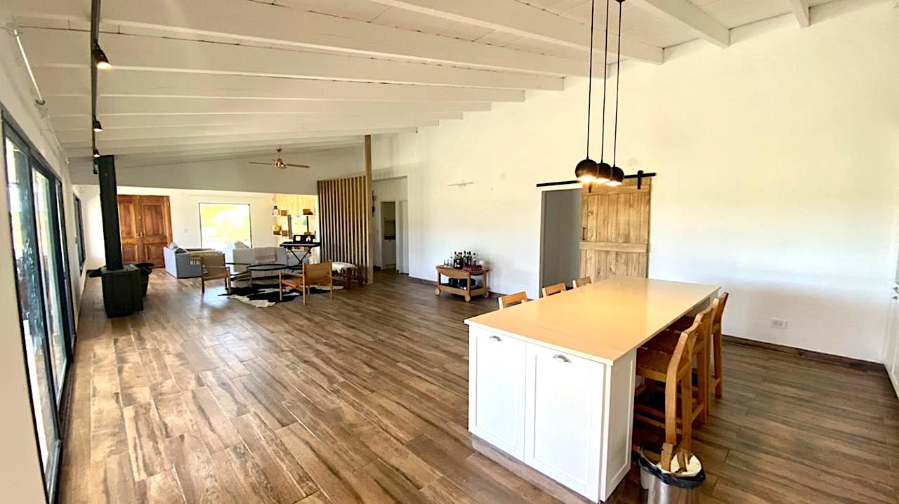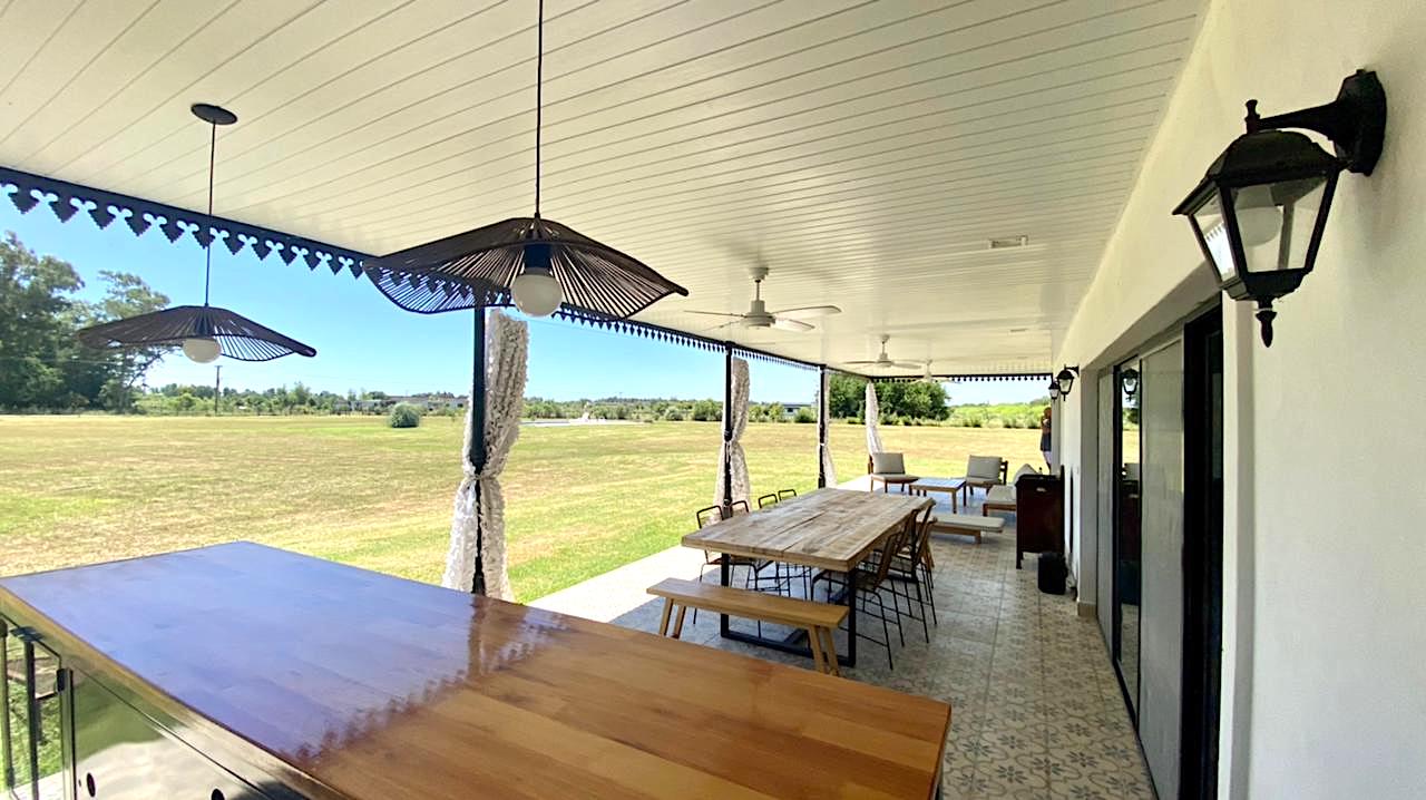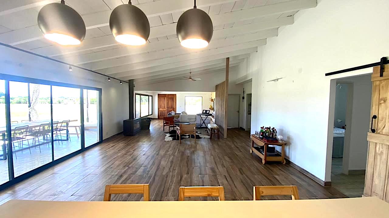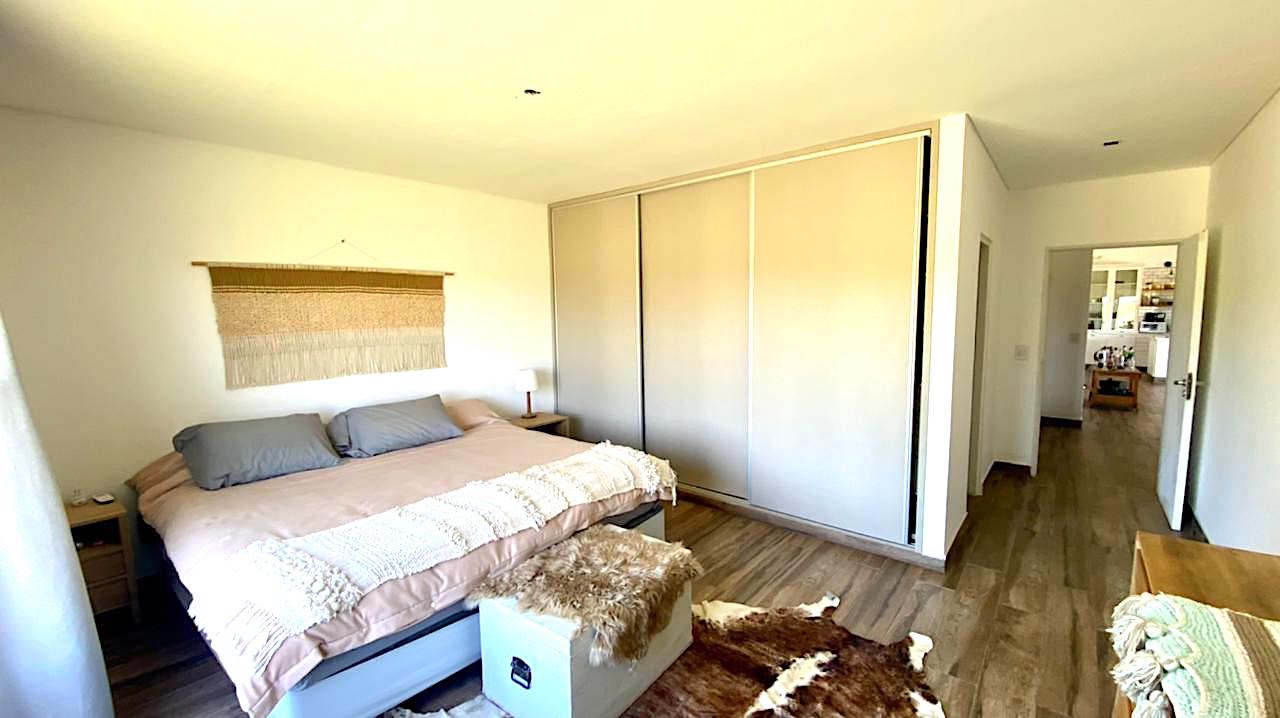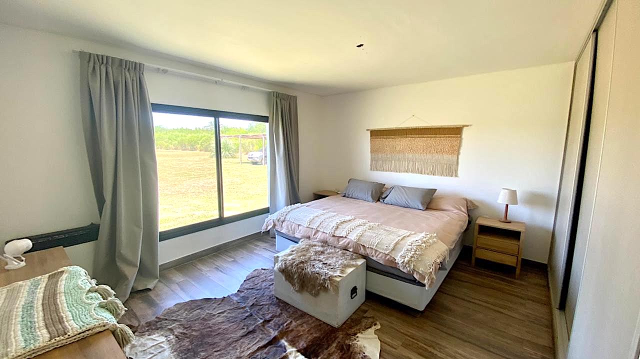 Lote grande y luminoso, con ubicación, árboles y verde que le dan intimidad y vistas de campo muy lindas, especialmente al atardecer. Casa nueva y funcional. Pileta y galería amplia con parrilla. Living comedor con cocina integrada. Toilette y lavadero. Dormitorio principal en suite. Dos dormitorios que comparten un baño. Anexo grande con baño completo, que sirve tanto de amplio 4to dormitorio como de playroom/taller/garage u otros usos.