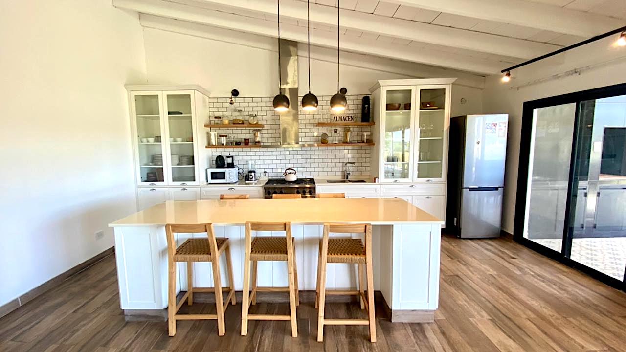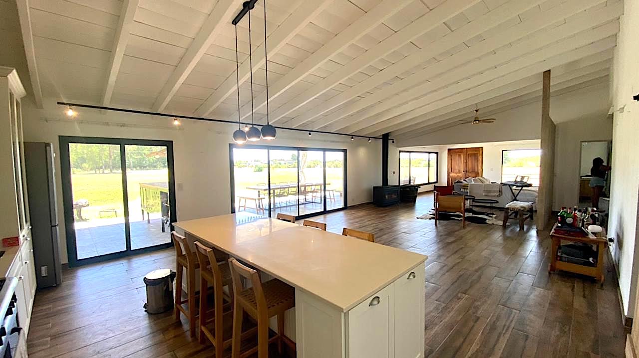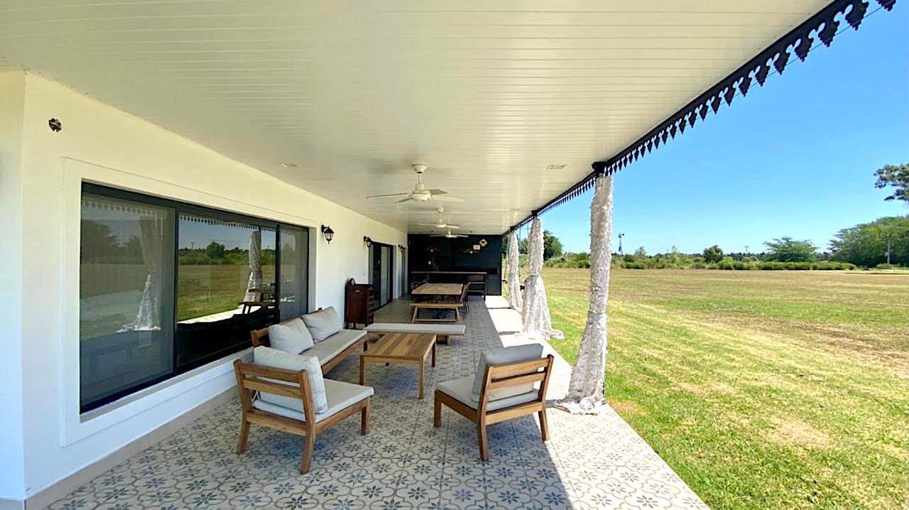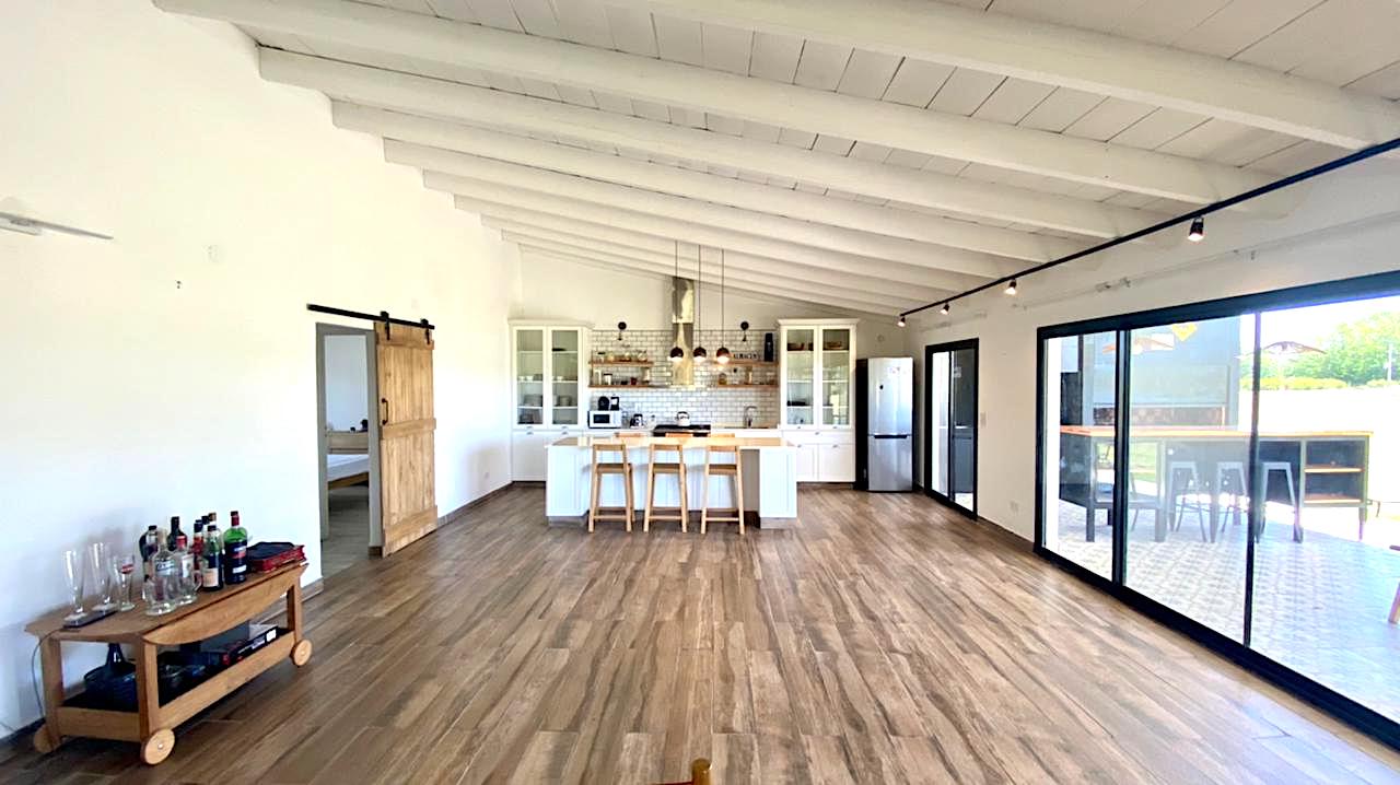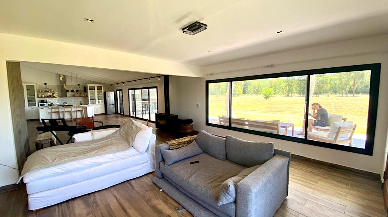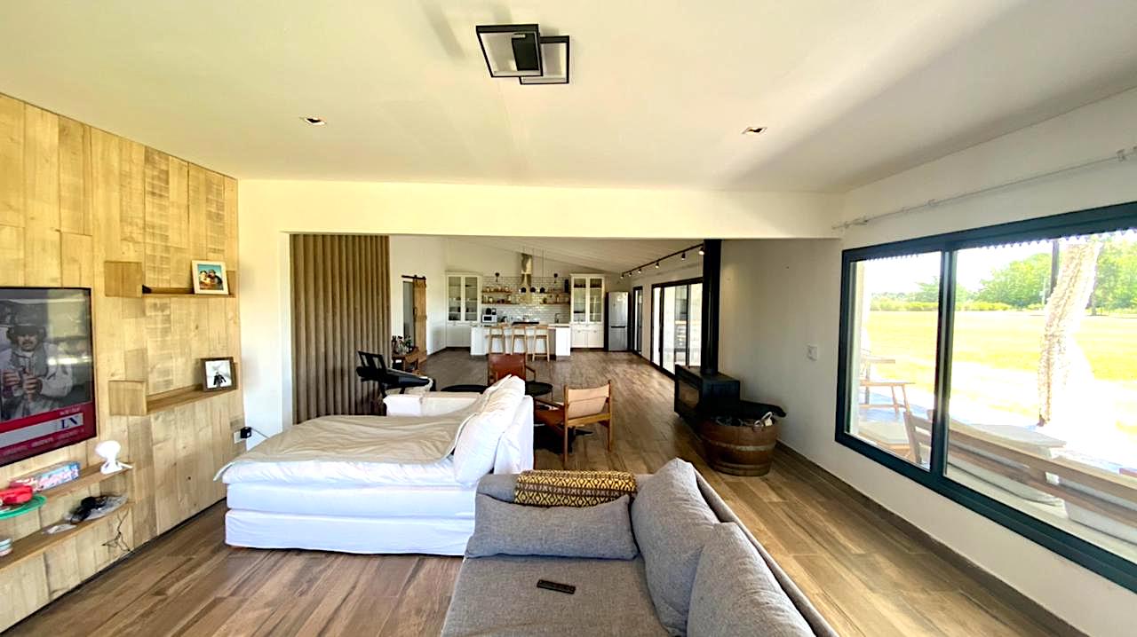 Lote grande y luminoso, con ubicación, árboles y verde que le dan intimidad y vistas de campo muy lindas, especialmente al atardecer. Casa nueva y funcional. Pileta y galería amplia con parrilla. Living comedor con cocina integrada. Toilette y lavadero. Dormitorio principal en suite. Dos dormitorios que comparten un baño. Anexo grande con baño completo, que sirve tanto de amplio 4to dormitorio como de playroom/taller/garage u otros usos.