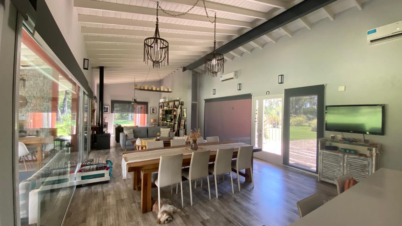 Casa muy bien construida y con comodidades y equipamiento. Lindísimo jardín arbolado, buena pileta con regulador de temperatura y amplia galería sobre el mismo. Depósito exterior y grupo electrógeno. Living comedor con cocina integrada y toilette. Lavadero/despensa independiente. 1 dormitorio principal en suite con amplio vestidor. Dos dormitorios que comparten baño, ambos con salida exterior. A/C frío/calor, radiadores, caldera eléctrica y gas.